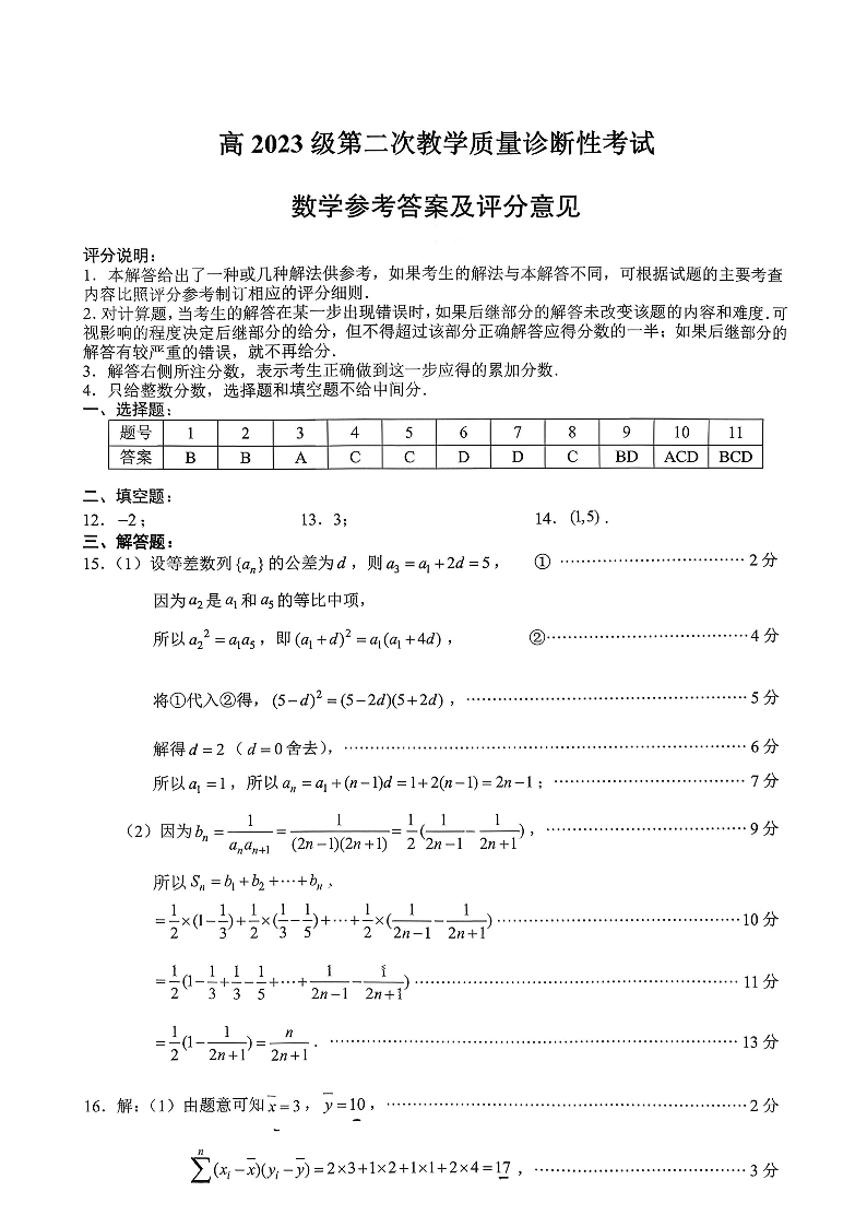 泸州市高2023级第二次教学质量诊断性考试 数学答案.pdf