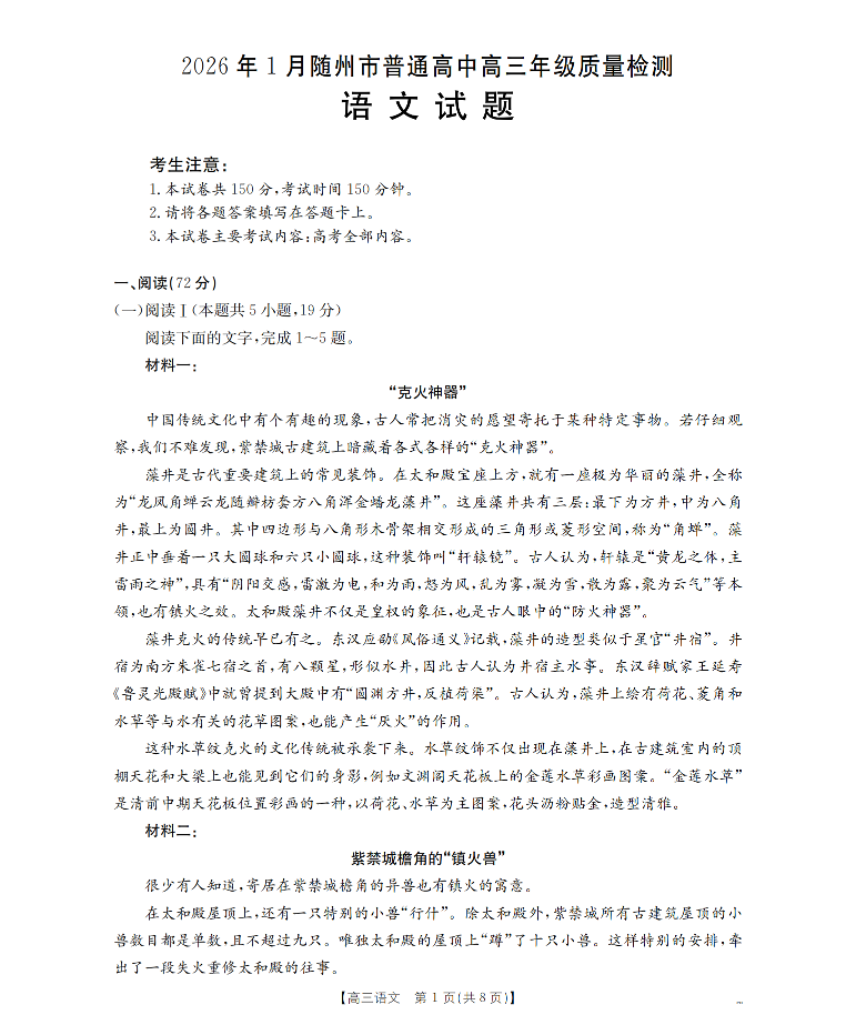 2026年1月随州市普通高中高三年级期末质量检测 语文.pdf