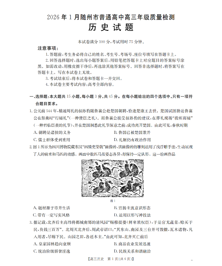 2026年1月随州市普通高中高三年级期末质量检测 历史.pdf
