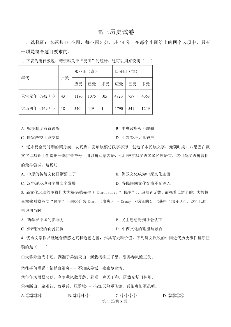 河北省沧州市六县一中2026届高三一模 历史.docx