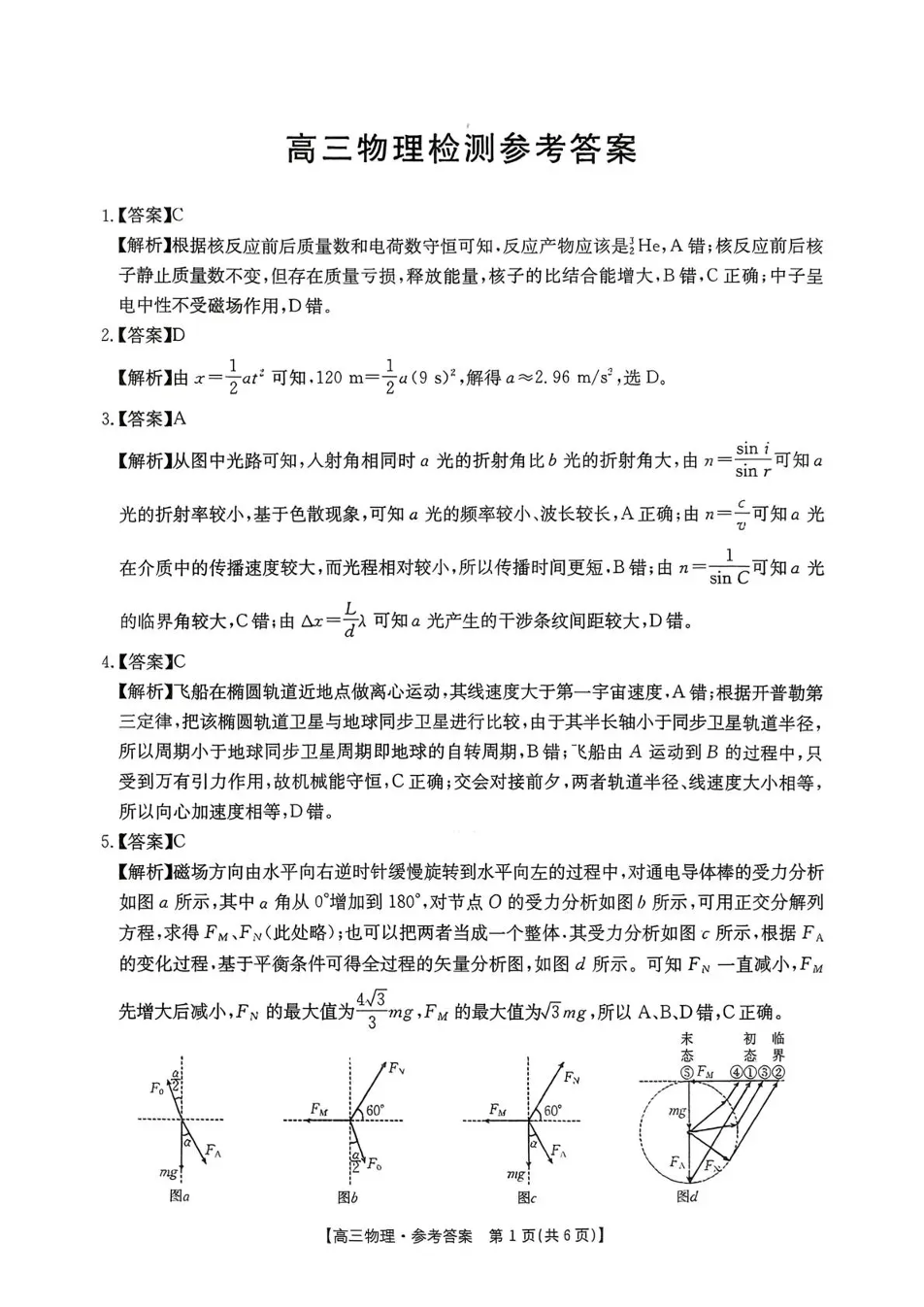 四川省达州市2026届高三上学期1月期末联考 物理答案.pdf