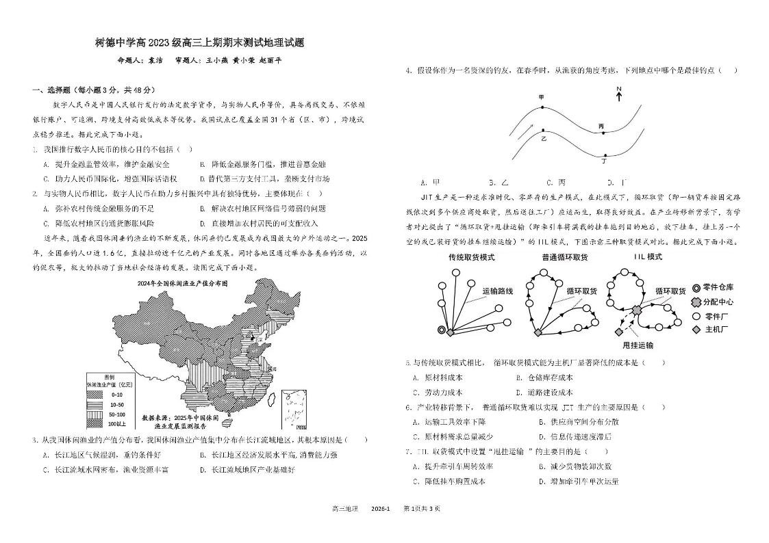树德中学高2023级高三上期期末测试 地理试题(含答案).pdf