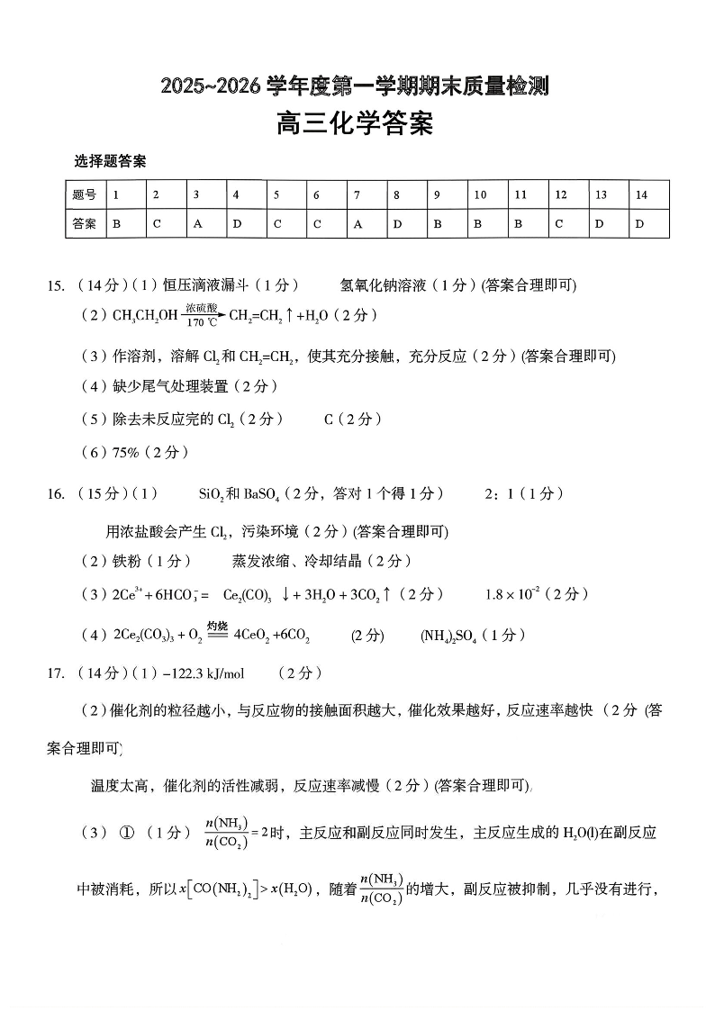 驻马店2025-2026学年度第一学期高三期末质量监测 化学答案.pdf