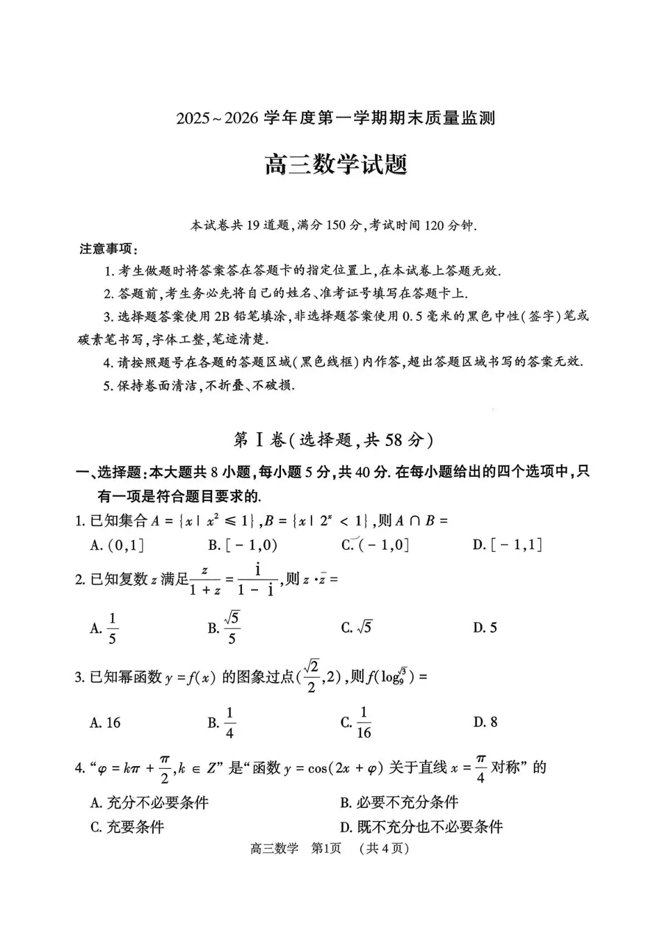 驻马店2025-2026学年度第一学期高三期末质量监测 数学.pdf