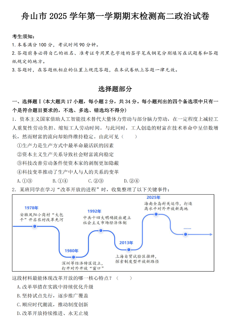 浙江省舟山市2025学年高二第一学期期末检测 政治.pdf