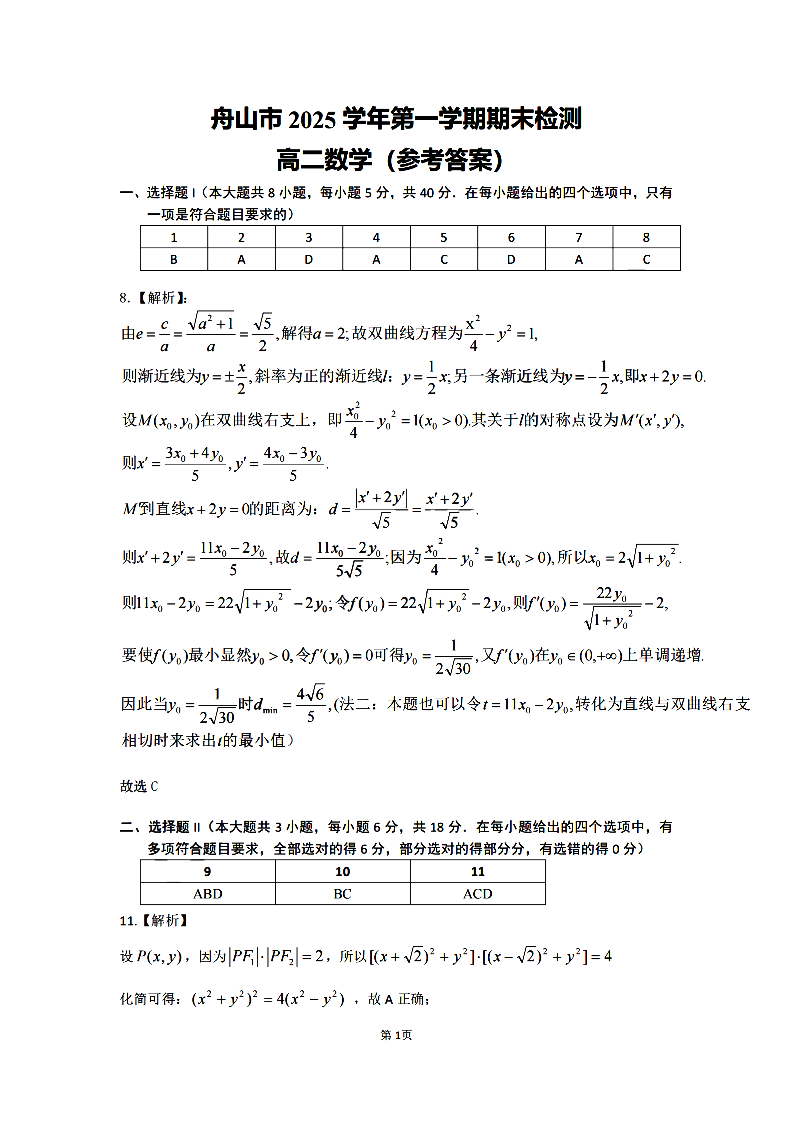 浙江省舟山市2025学年高二第一学期期末检测 数学答案.pdf