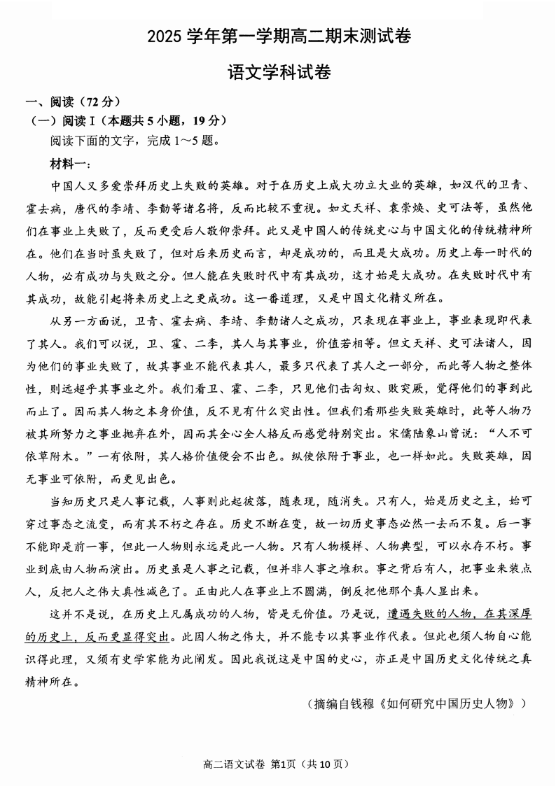 浙江省宁波市慈溪市2025学年高二第一学期期末测试 语文.pdf