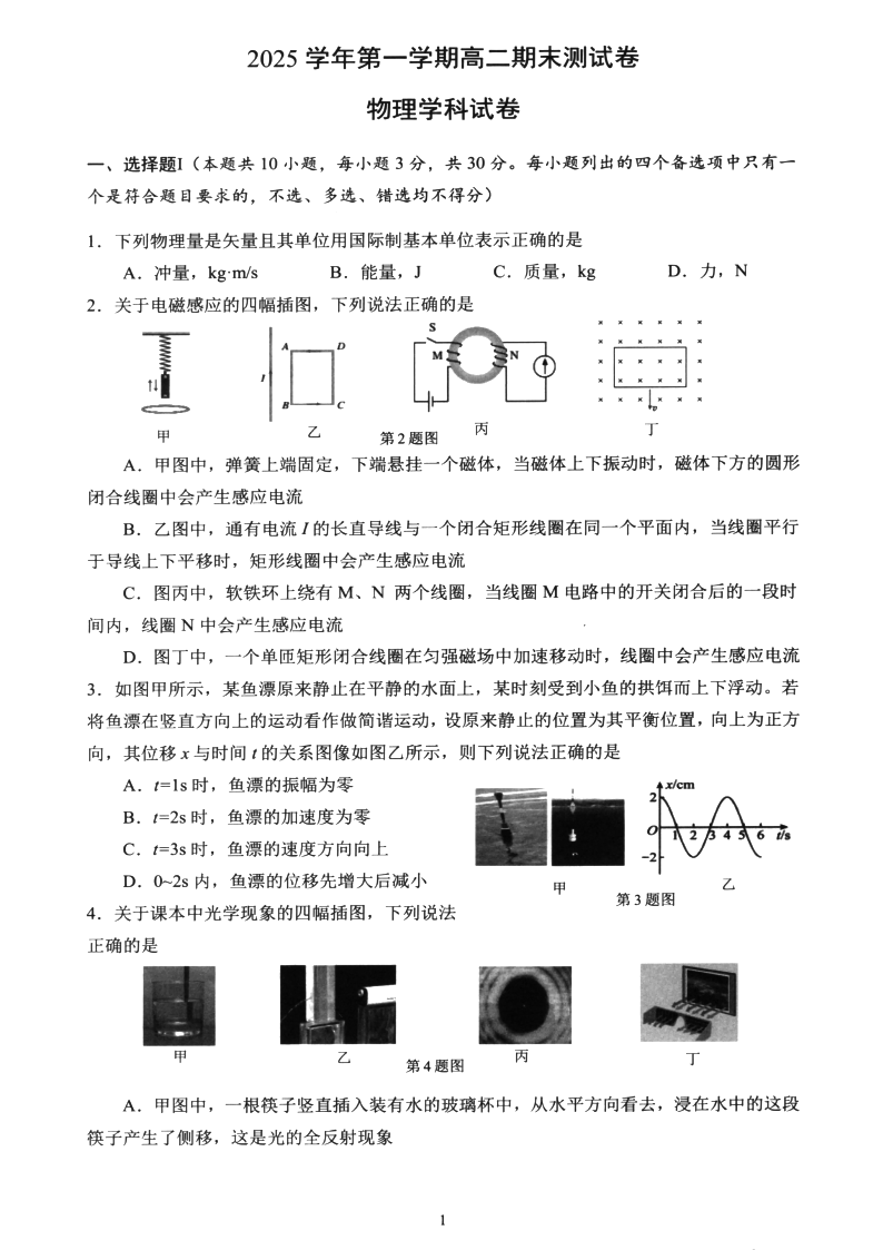 浙江省宁波市慈溪市2025学年高二第一学期期末测试 物理.pdf