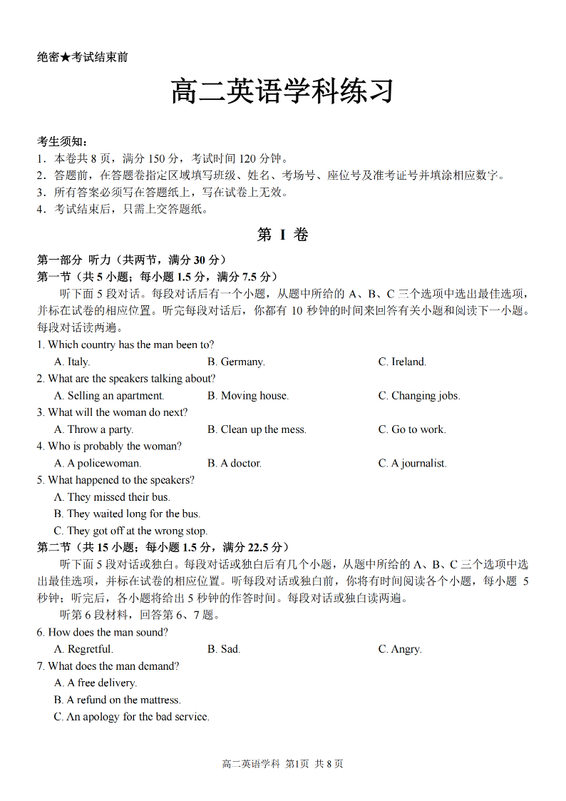 浙江省宁波三锋教研联盟2025学年高二第一学期期末测试 英语.pdf