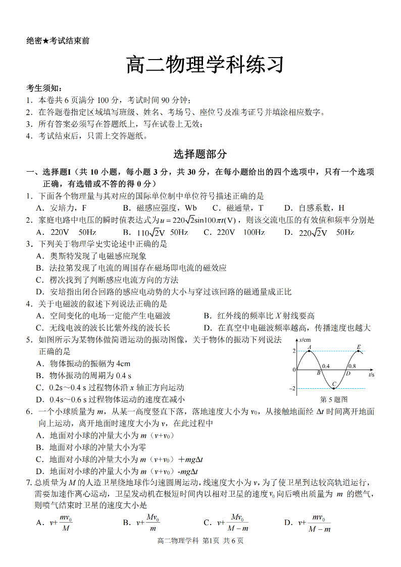 浙江省宁波三锋教研联盟2025学年高二第一学期期末测试 物理.pdf