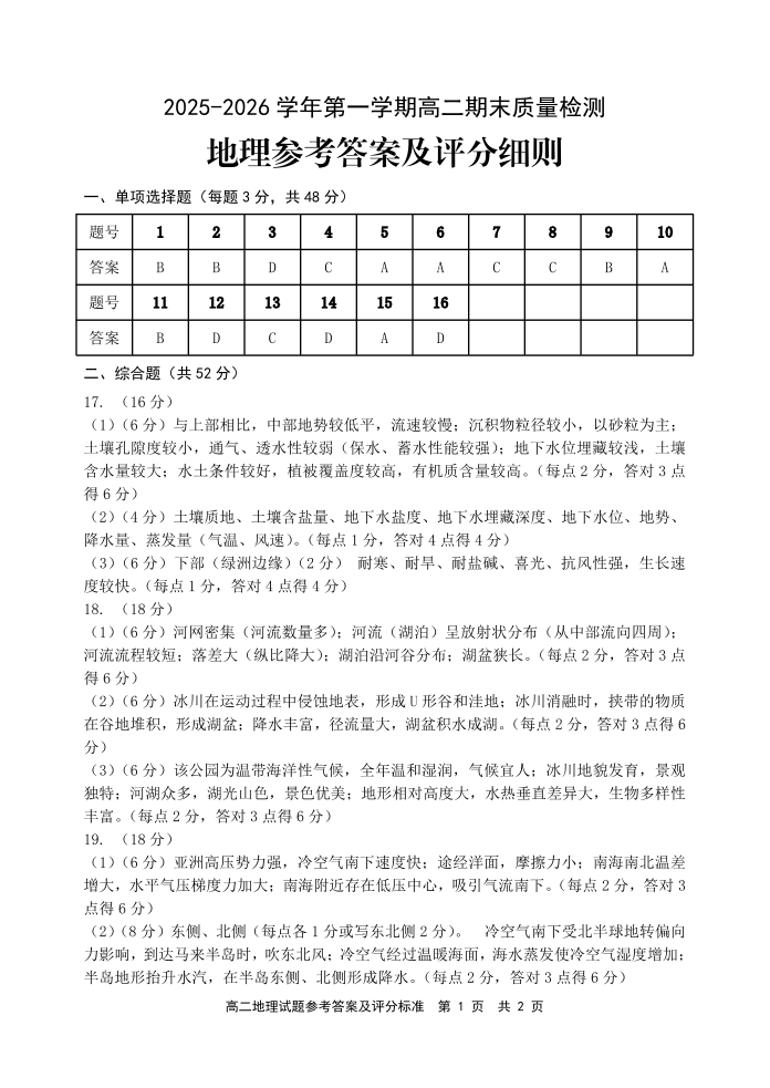 【地理答案】宁德市2025-2026学年第一学期期末高二质量检测.pdf