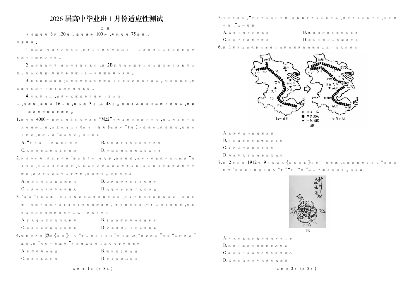 历史正文(2026届高中毕业班1月份适应性测试).pdf