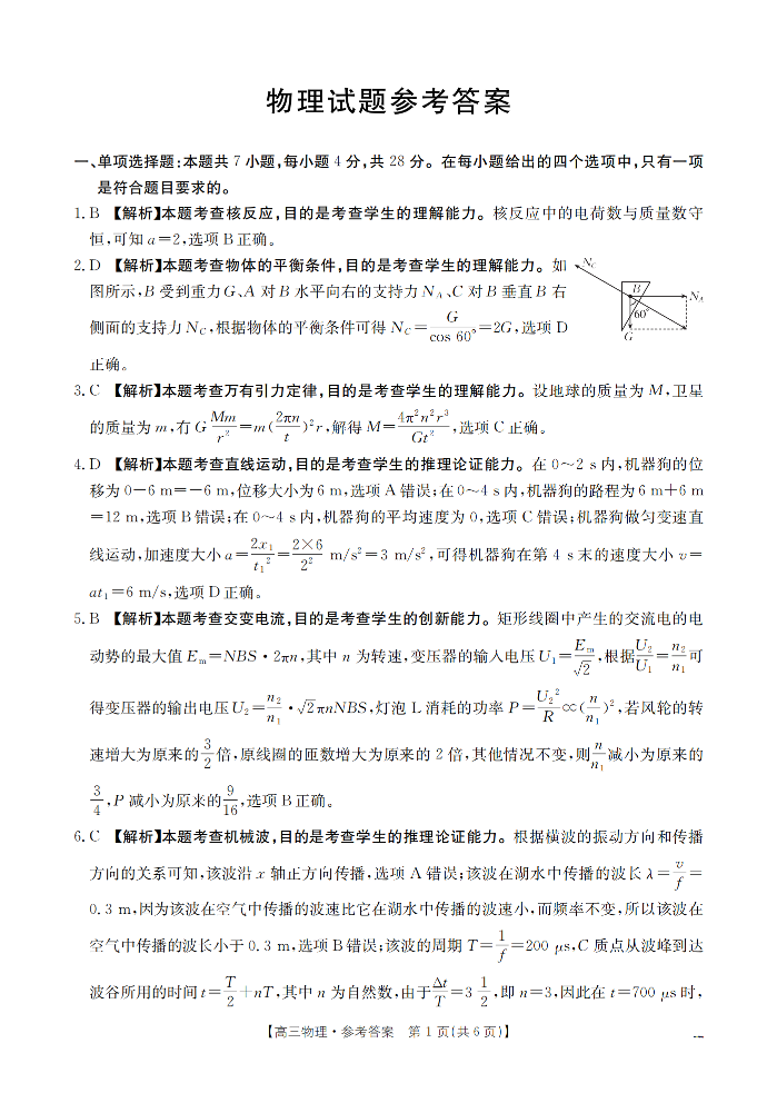 河北省2026届高三上学期1月联考 物理答案.pdf