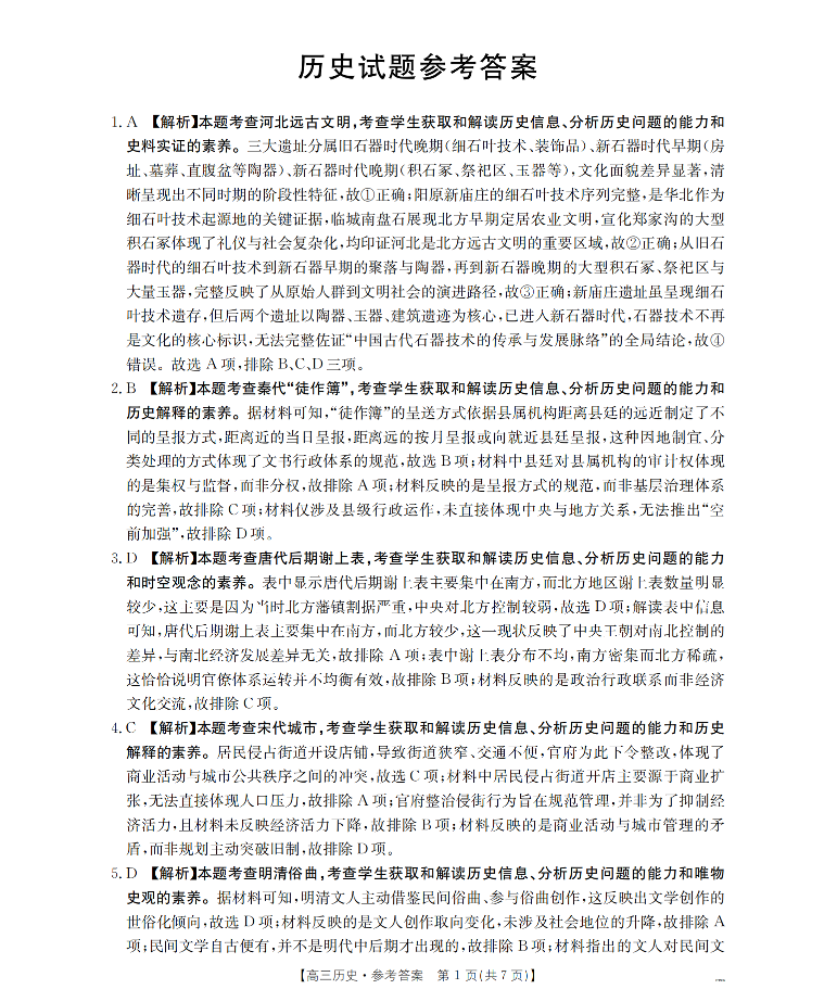 河北省2026届高三上学期1月联考 历史答案.pdf