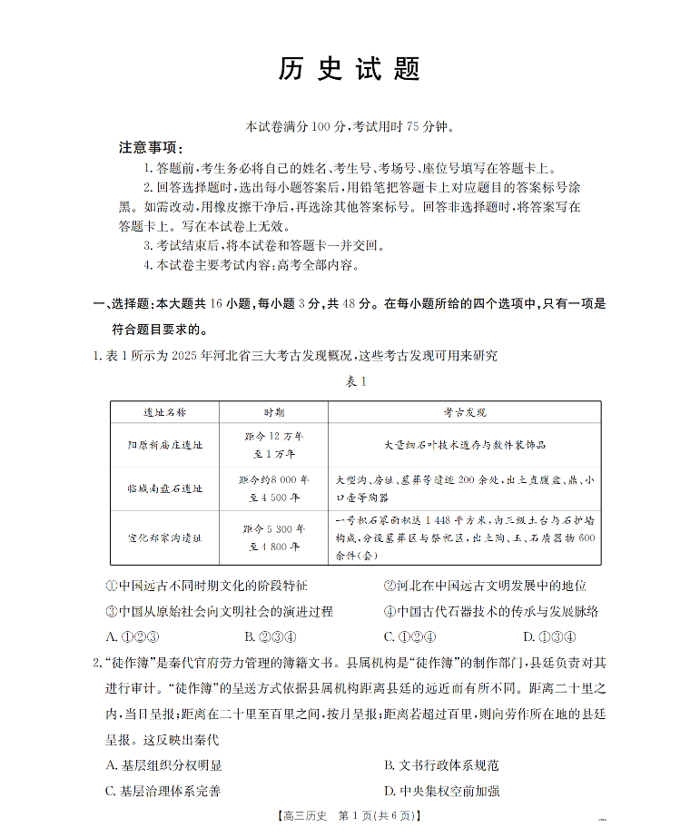 河北省2026届高三上学期1月联考 历史.pdf