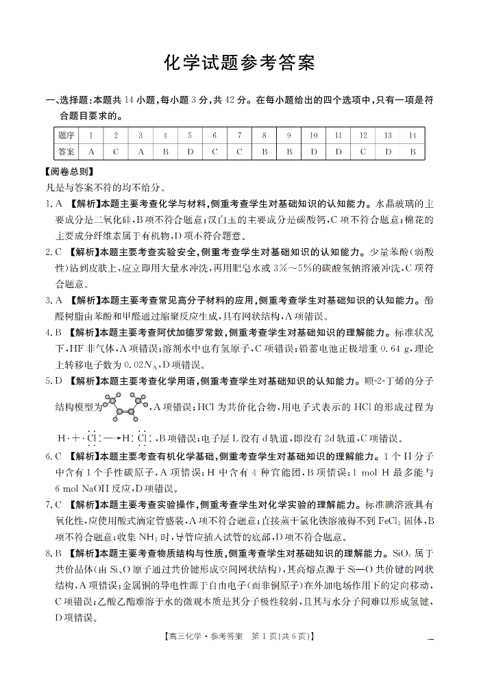 河北省2026届高三上学期1月联考 化学答案.pdf