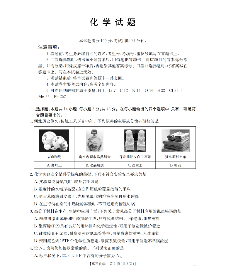 河北省2026届高三上学期1月联考 化学.pdf