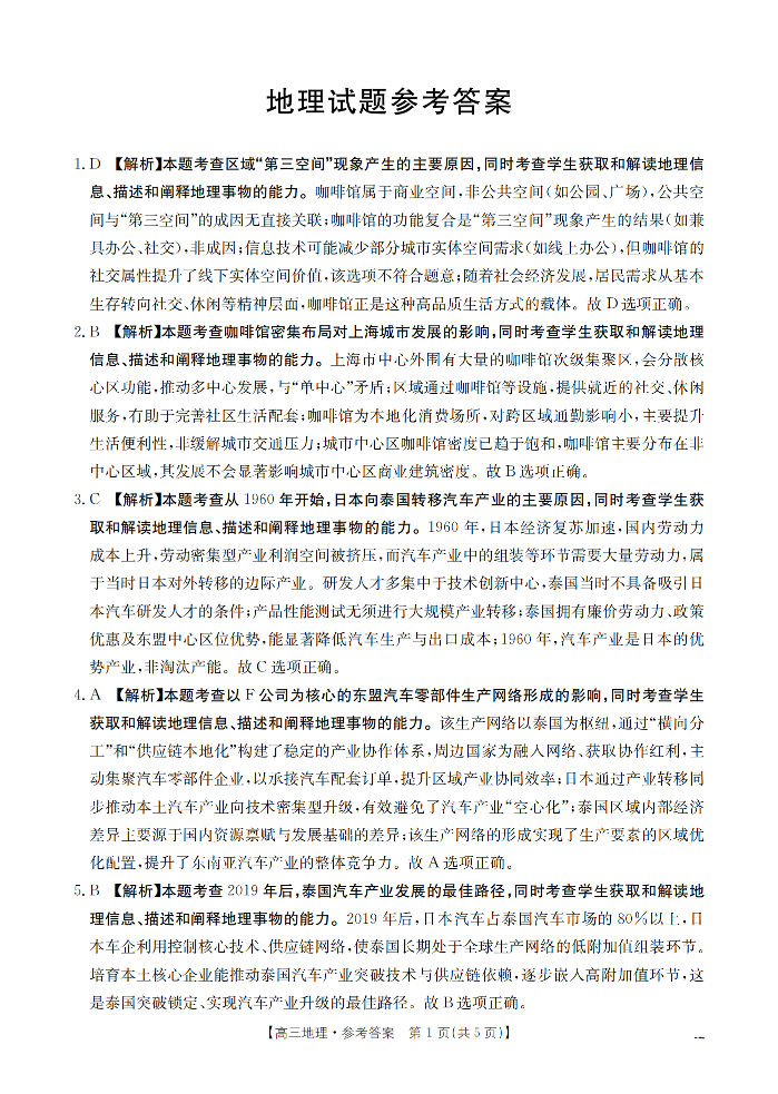 河北省2026届高三上学期1月联考 地理答案.pdf