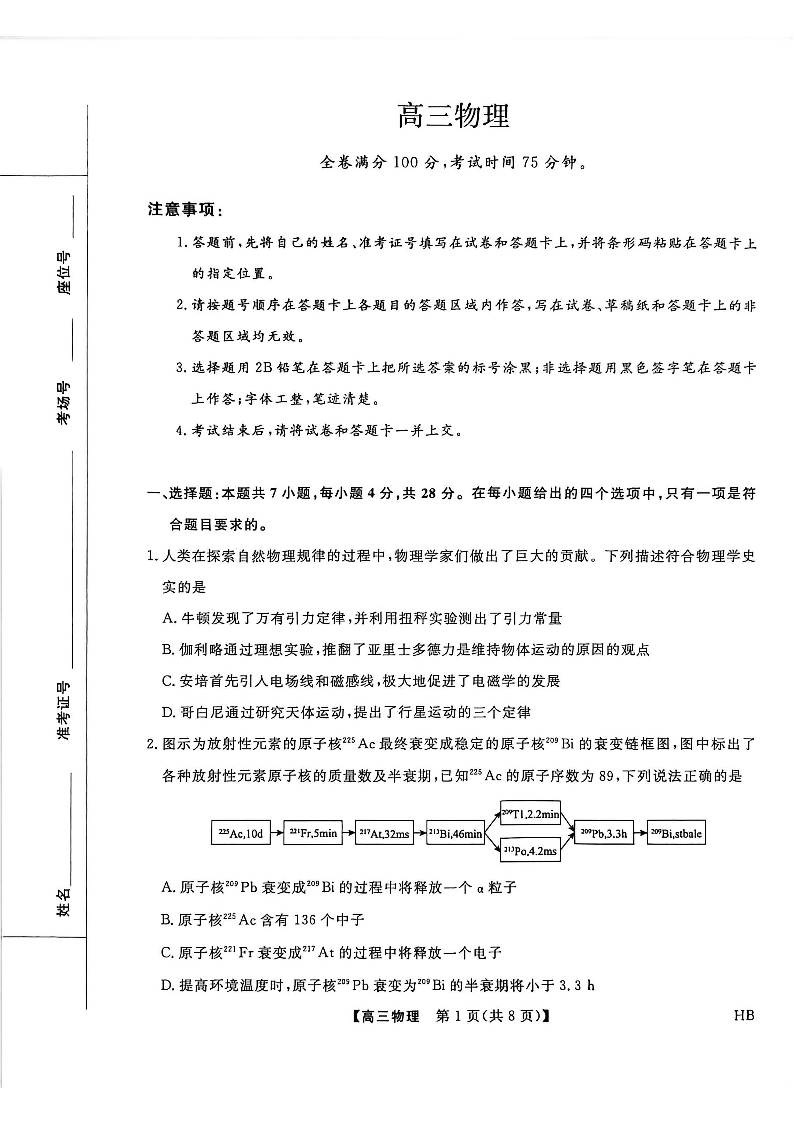 河北省邯郸市2026年高三上学期二月份金科大联考 物理.pdf