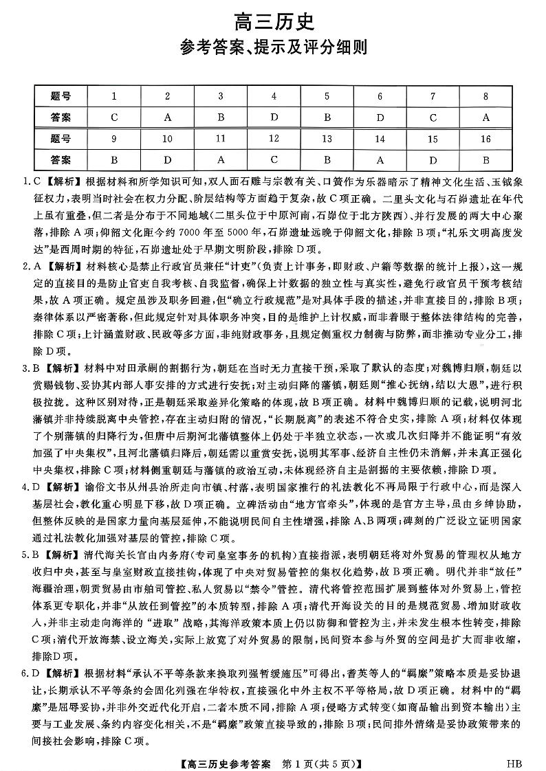 河北省邯郸市2026年高三上学期二月份金科大联考 历史答案.pdf