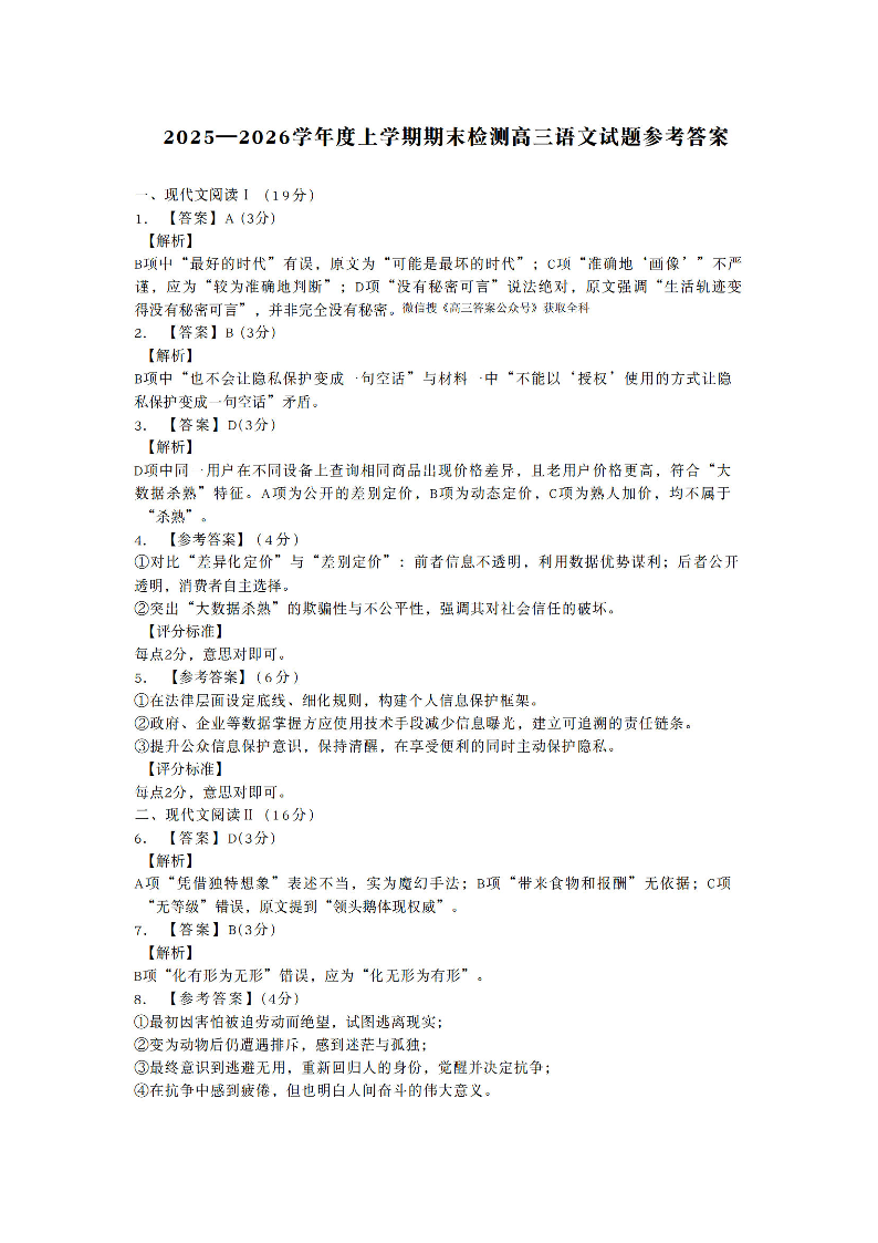 三门峡市2025-2026学年度高三上学期期末检测 语文答案.pdf