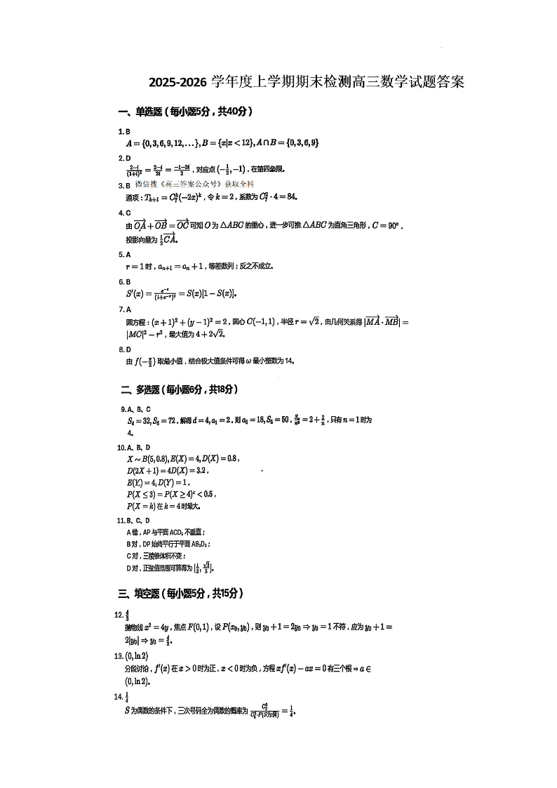 三门峡市2025-2026学年度高三上学期期末检测 数学答案.pdf