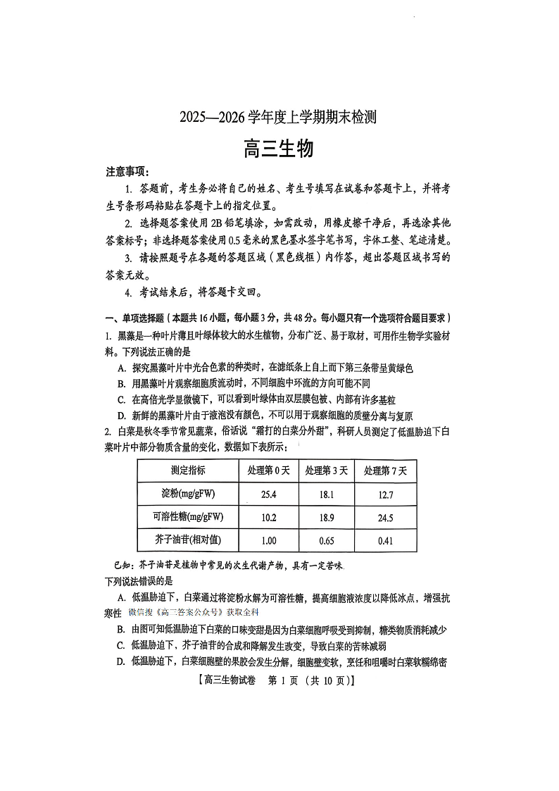 三门峡市2025-2026学年度高三上学期期末检测 生物.pdf