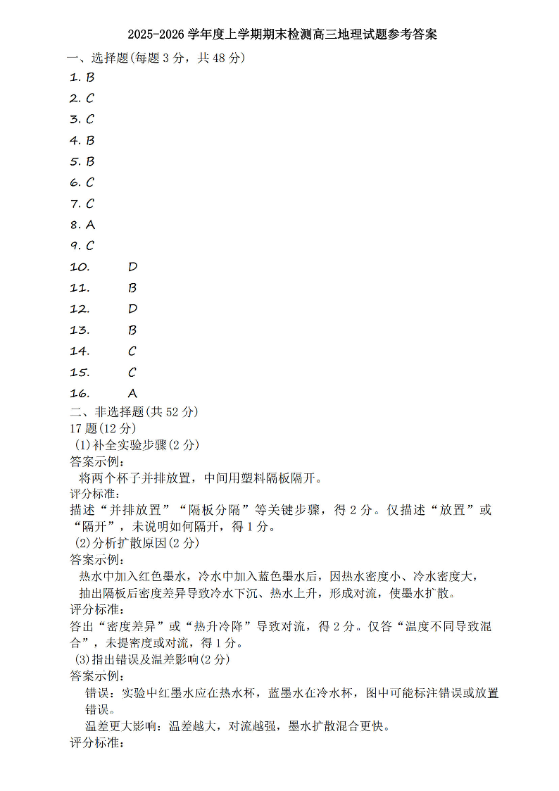 三门峡市2025-2026学年度高三上学期期末检测 地理答案.pdf