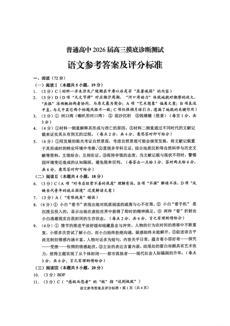 云南省昆明市普通高中2026届高三摸底诊断测试 语文答案.pdf