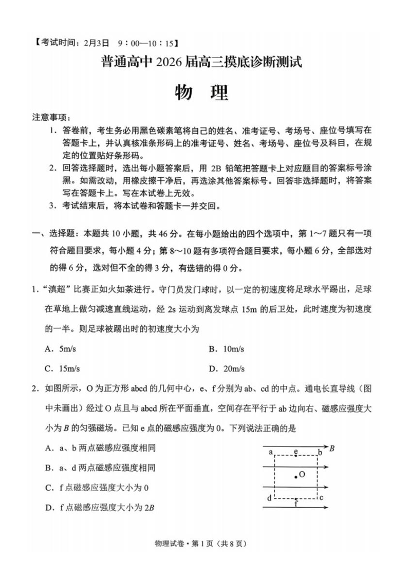 云南省昆明市普通高中2026届高三摸底诊断测试 物理.pdf