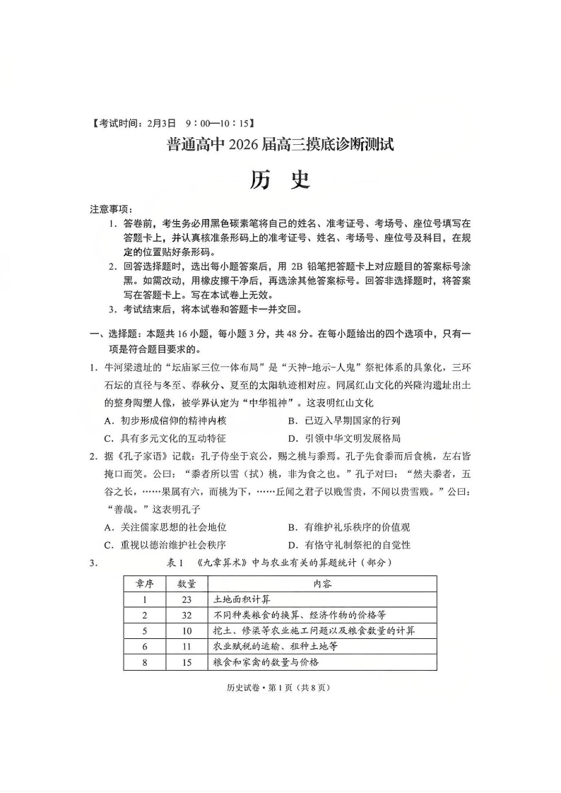 云南省昆明市普通高中2026届高三摸底诊断测试 历史.pdf