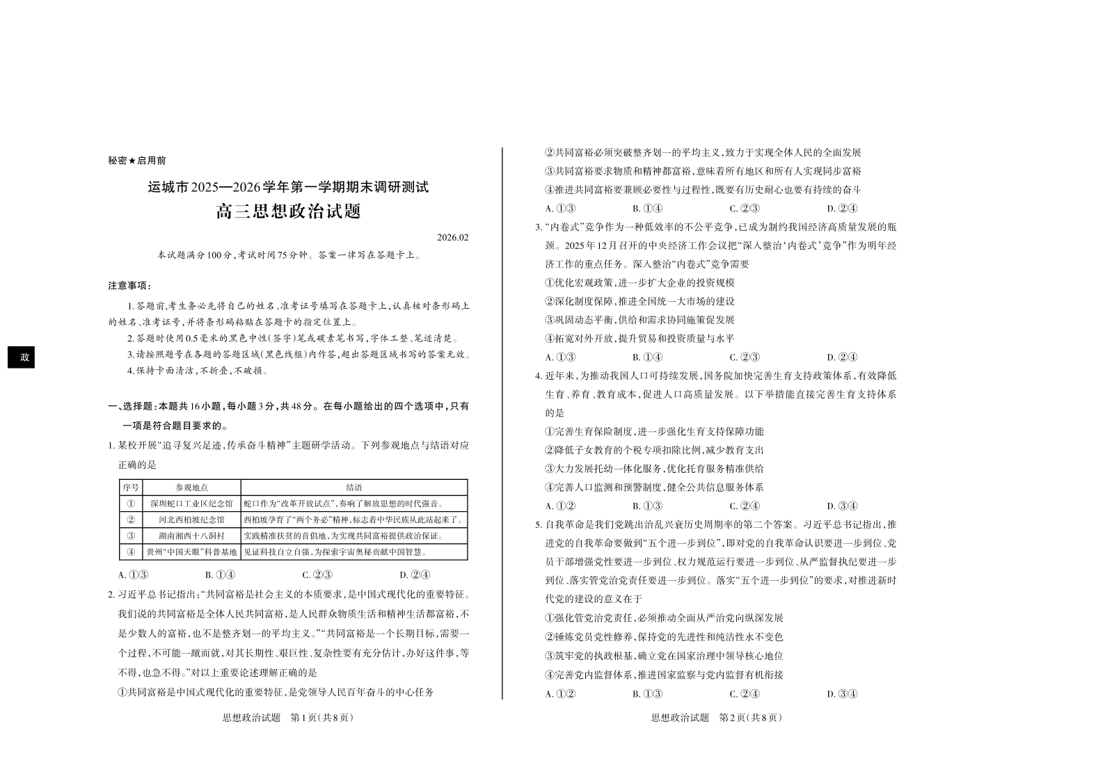 运城市2025—2026学年第一学期高三期末调研测试 政治.pdf