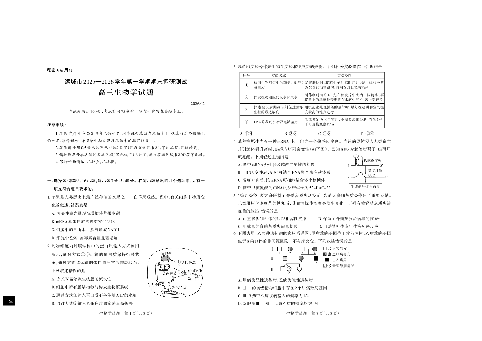 运城市2025—2026学年第一学期高三期末调研测试 生物.pdf