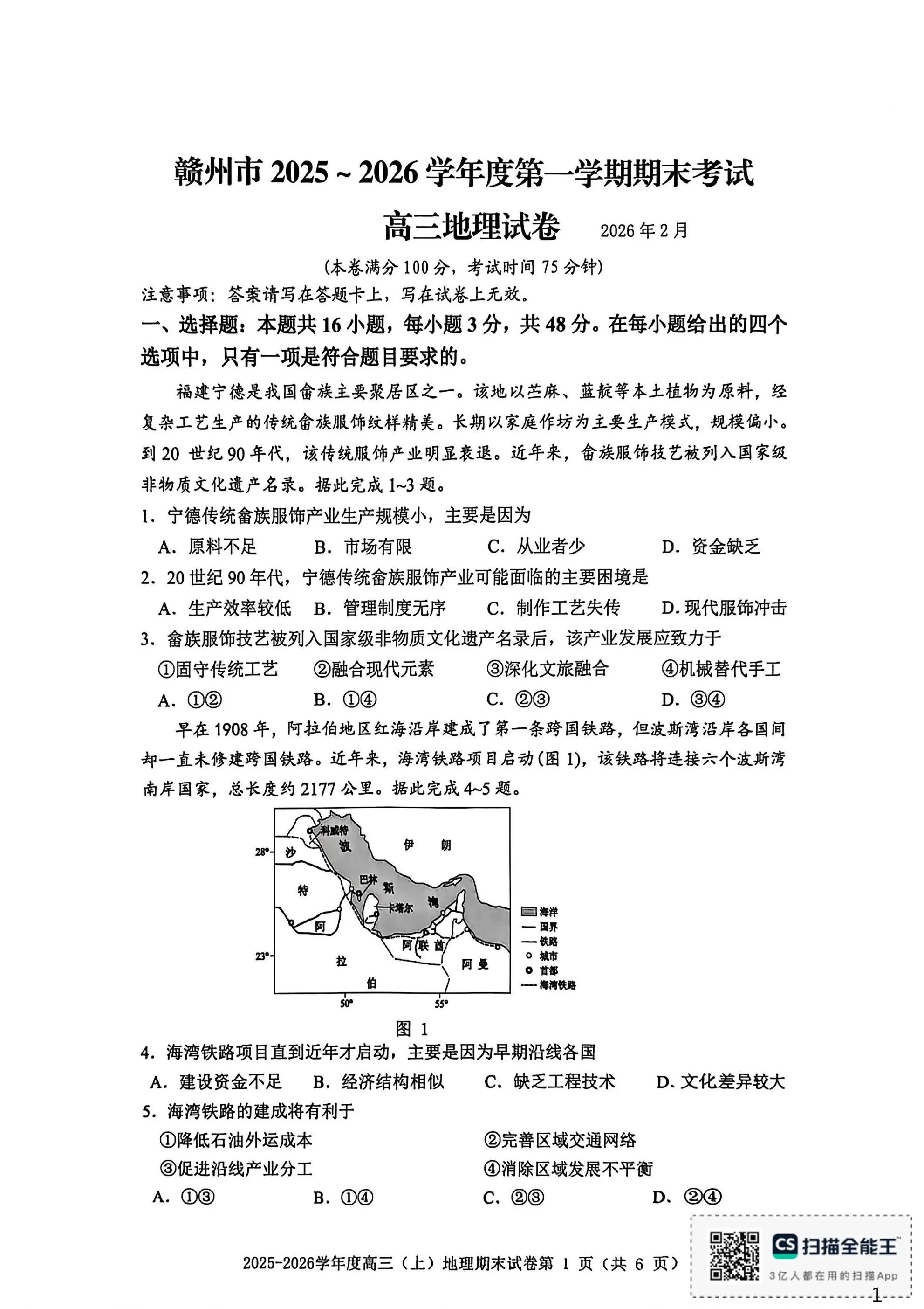 赣州市2025一2026学年度第一学期期末考试 地理.pdf