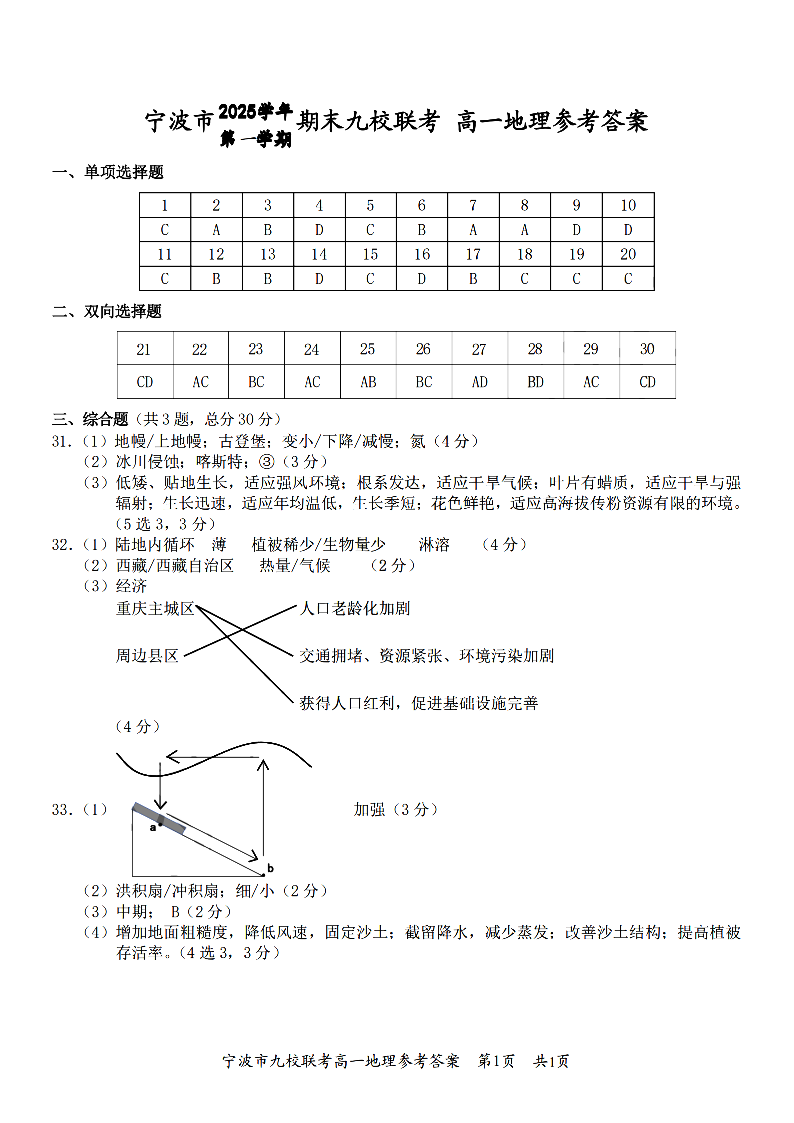 浙江省宁波九校联盟2025学年高一第一学期期末联考 地理答案.pdf