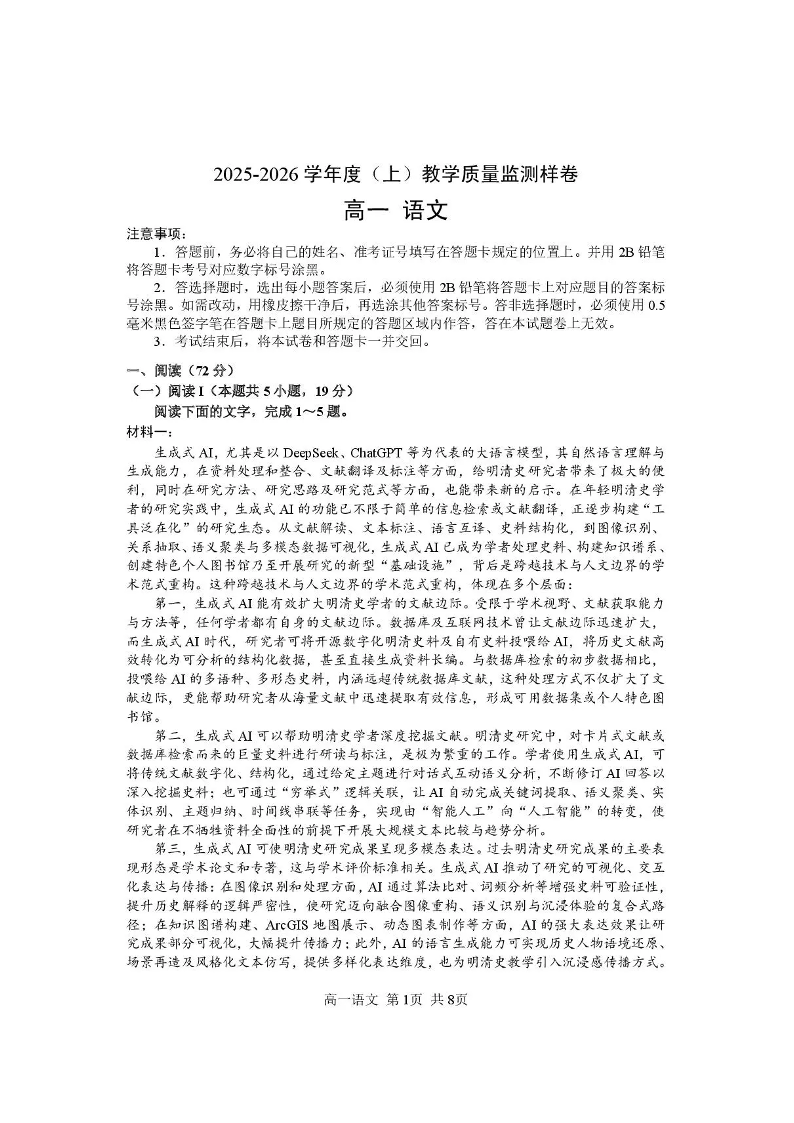 攀枝花市2025-2026学年度高一(上)教学质量监测样卷 语文.pdf
