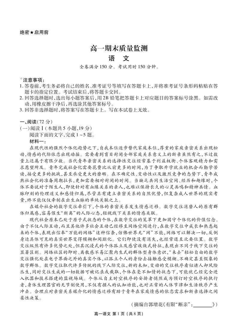 辽宁省点石联考2025-2026学年高一期末质量监测 语文.pdf