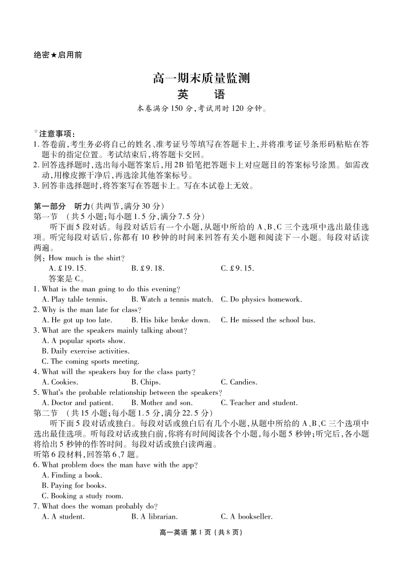 辽宁省点石联考2025-2026学年高一期末质量监测 英语.pdf