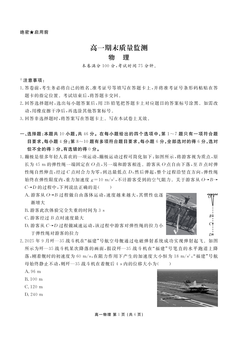 辽宁省点石联考2025-2026学年高一期末质量监测 物理.pdf