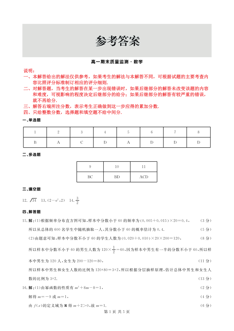 辽宁省点石联考2025-2026学年高一期末质量监测 数学答案.pdf