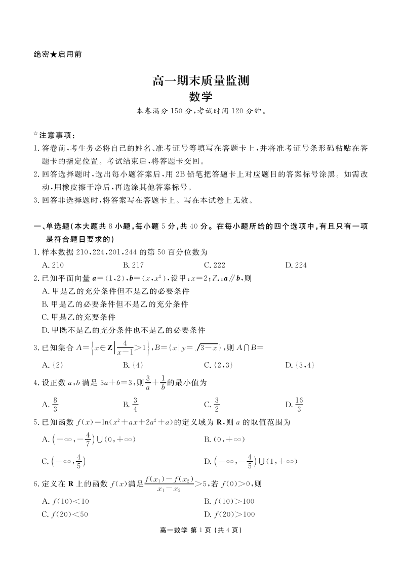 辽宁省点石联考2025-2026学年高一期末质量监测 数学.pdf