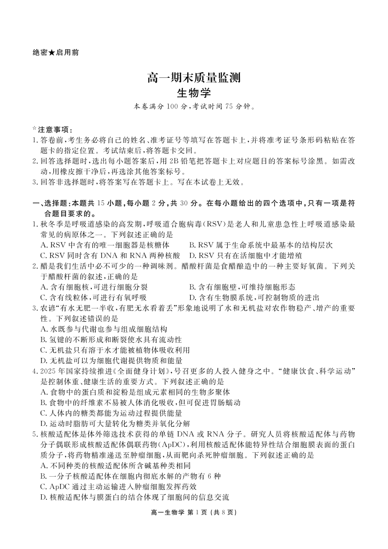 辽宁省点石联考2025-2026学年高一期末质量监测 生物.pdf