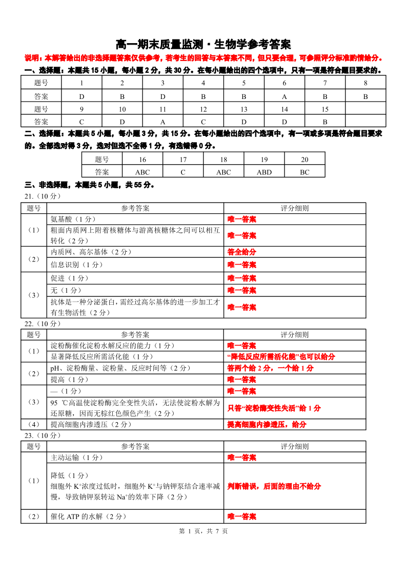 辽宁省点石联考2025-2026学年高一期末质量监测 生物(B版)答案.pdf
