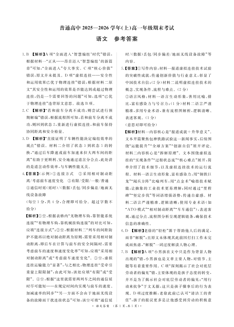 河南省普通高中青桐鸣大联考2025-2026学年(上)高一年级期末考试 语文答案.pdf
