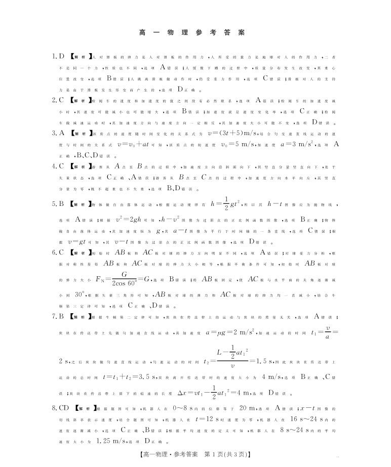 广东省2025-2026学年高一上学期1月期末联考 物理答案.pdf