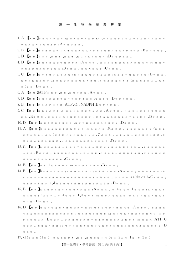 广东省2025-2026学年高一上学期1月期末联考 生物答案.pdf