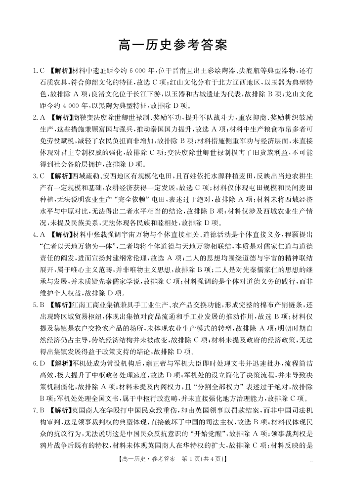 广东省2025-2026学年高一上学期1月期末联考 历史答案.pdf