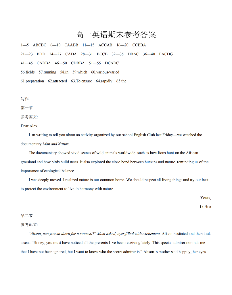 甘肃省定西地区2025-2026学年(上)高一期末考试 英语答案.pdf