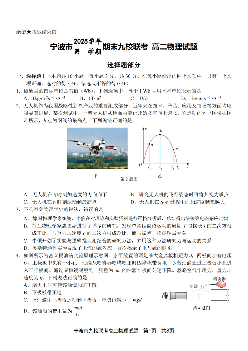 浙江省宁波九校联盟2025学年高二第一学期期末联考 物理.pdf