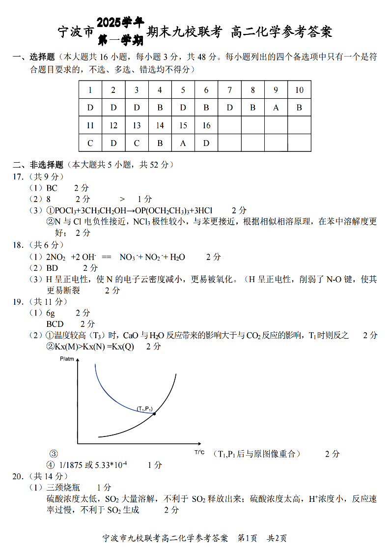 浙江省宁波九校联盟2025学年高二第一学期期末联考 化学答案.pdf